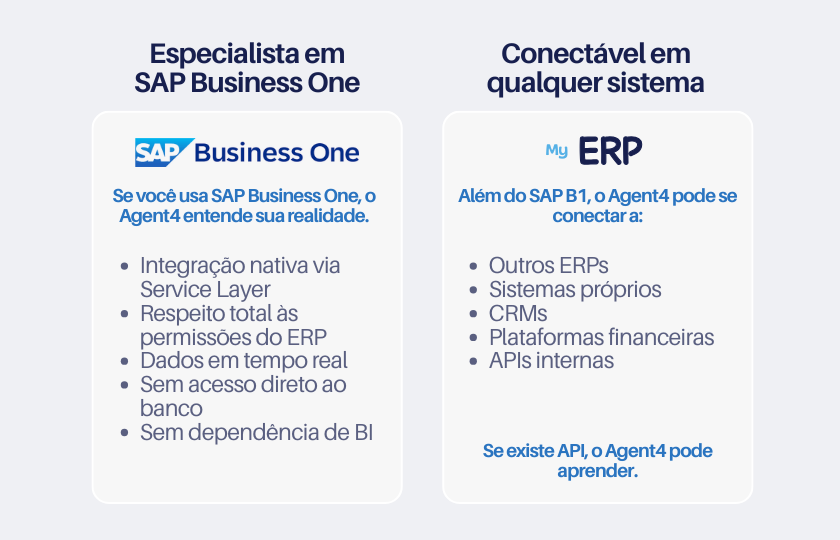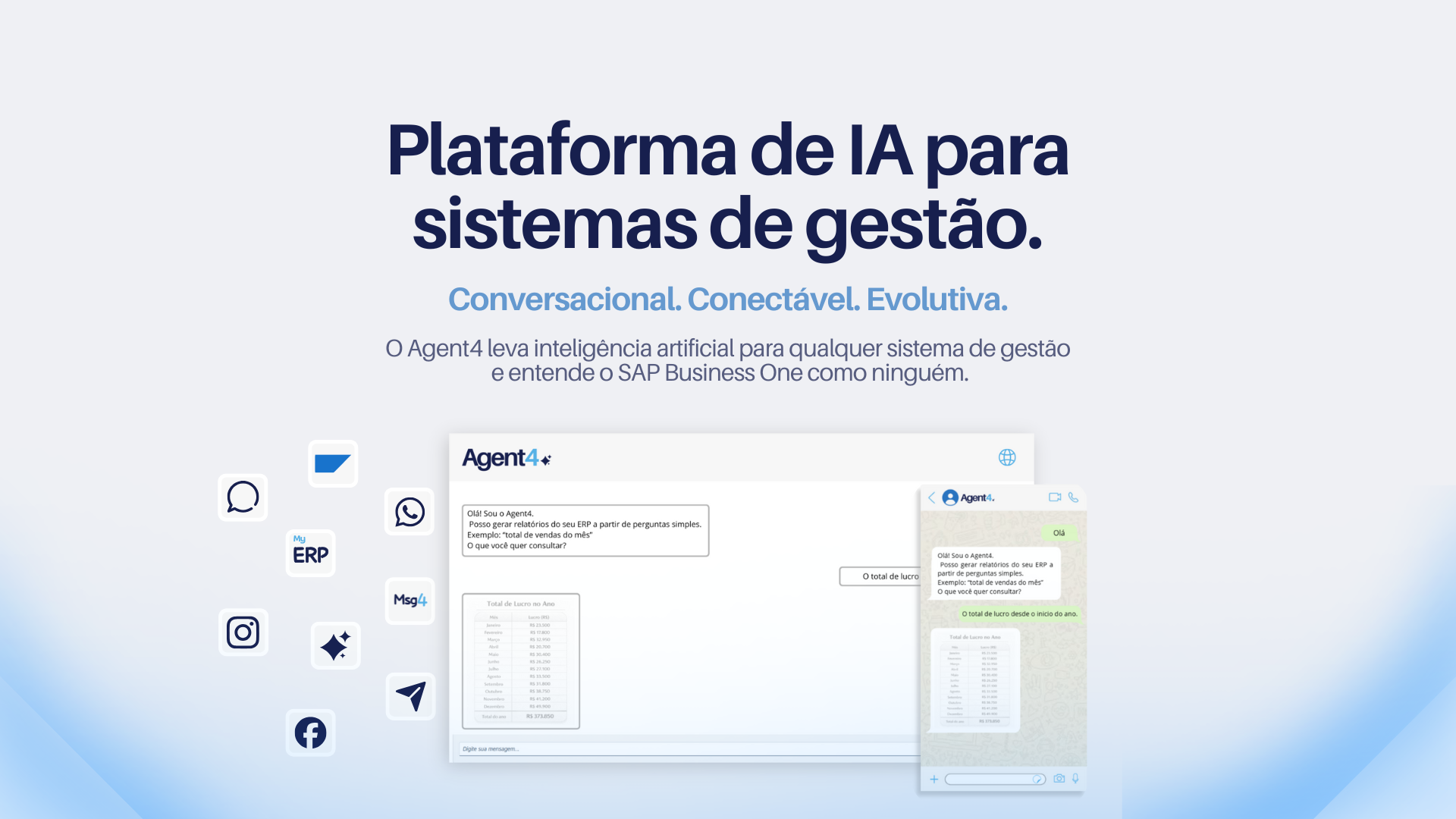 Agent4 é uma plataforma de IA conversacional conectada a sistemas de gestão.